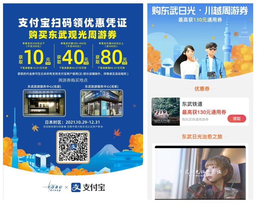 本キャンペーンでは、東武鉄道が東武ツーリストインフォメーションセンター浅草および池袋で発売している在留中国人向けの特別企画乗車券「NIKKO Discount Ticket」をアリペイで決済すると、決済金額に応じて次回以降の決済で使用できる割引クーポンが発行されます。「NIKKO Discount Ticket」は、浅草駅から東武日光駅までの鉄道、バスなどの公共交通機関や、一部施設の利用料が割引料金となり、お得に日光を観光することができます。