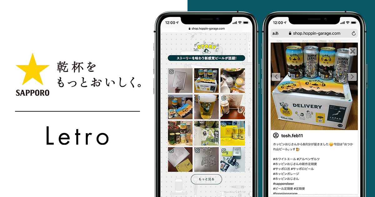 SaaSとデジタル人材で企業のマーケティングDXを支援するアライドアーキテクツ株式会社(東京都渋谷区、代表取締役社長 CEO:中村壮秀、プロダクトカンパニー プレジデント:村岡弥真人、証券コード:6081)は、サッポロビール株式会社(東京都渋谷区、代表取締役社長:野瀬 裕之、以下サッポロビール)に対し、当社の運用型UGC(※1)ソリューション「Letro(レトロ)」の提供を開始しました。サッポロビール「HOPPIN’ GARAGE」では、新規顧客獲得向けLP上にLetroを活用したことで、CVR(カート投入率)1.44倍を実現しました。