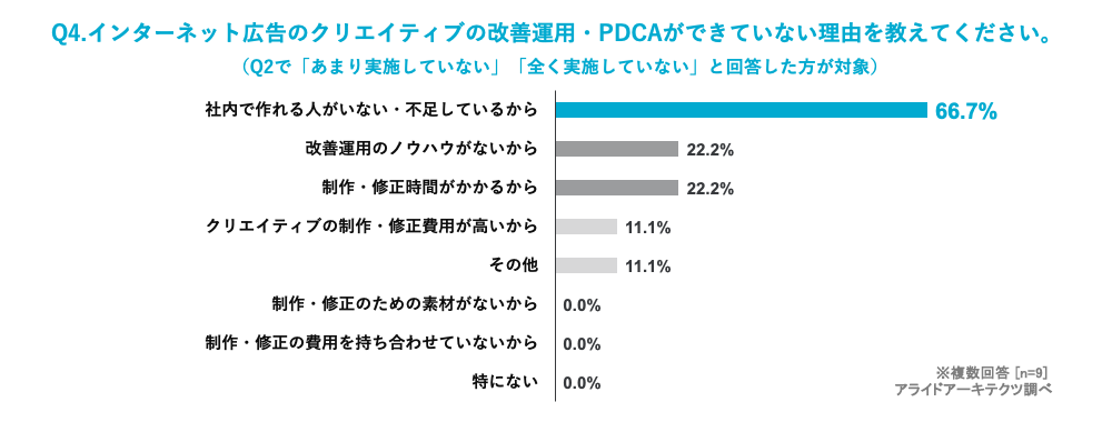 ■インターネット広告クリエイティブの運用ができない理由は、制作領域の担当者のスキル不足や人手不足。